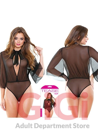 From the French for moon, Celine is a Mesh Collared bodysuit with Kimono sleeves and a silky tie neck to show off your heavenly body.