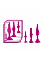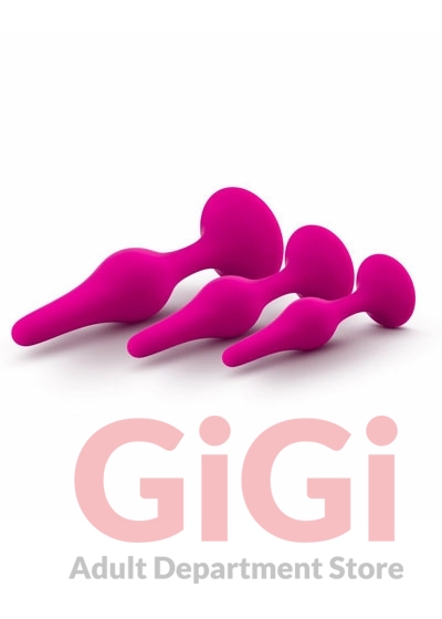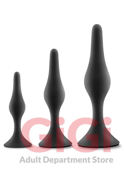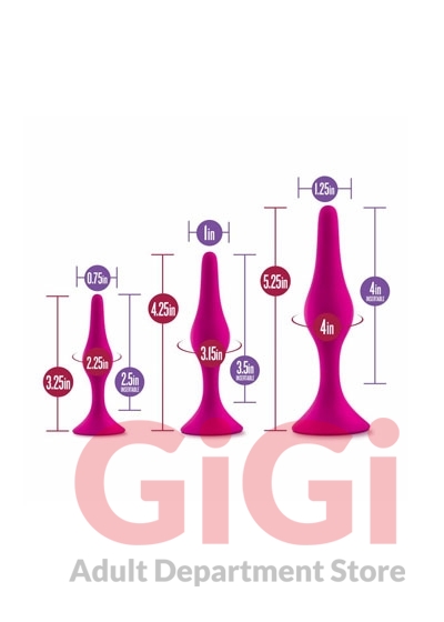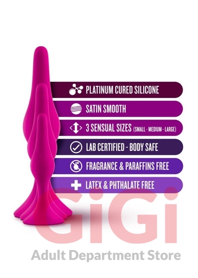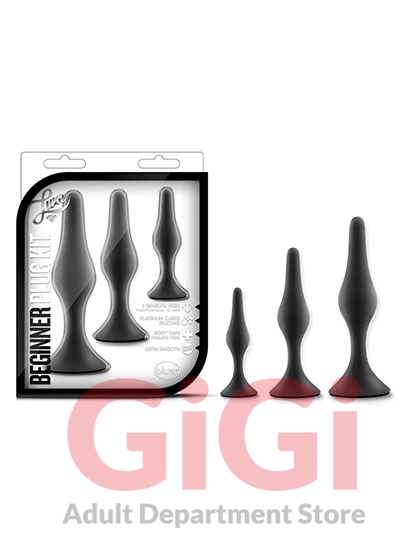 The Luxe Beginner Plug Kit is the perfect starter set for safe and gentle booty play. Each butt plug features a tapered tip for easy insertion and a tight neck for gentle pressure and extended wear. With three graduated sizes, the Luxe Beginner Plug Kit lets you start small and work your way up comfortably. Made of satin smooth, platinum cured silicone, these toys are body safe and easy to clean. For the best experience, use with your favorite high-quality water-based lubricant.