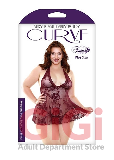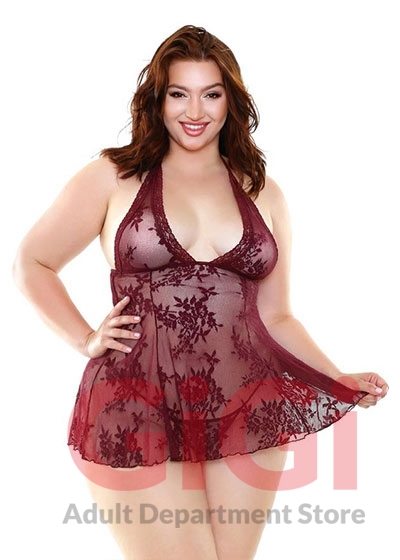 A spellbinding claret lace halter tie babydoll and G-string set. Morgana is a sophisticated silhouette perfectly accented with an alluring and delicate floral lace. This figure-flattering baby doll style features a tie back closure for the comfort and versatility of its wearer. The empire waistline along with the flowy skirt accentuate feminine curves.