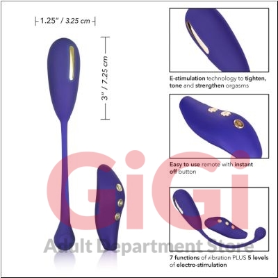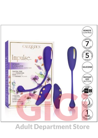 Impulse Intimate E-Stimulator Remote Kegel Exerciser use the zinc alloy stimulator pads to automatically tone and strengthen the pelvic muscles responsible for arousal and climax. Our tingling Kegel weight has 7 vibration functions, 5 electro-stim pads & a flexible retrieval cord. Tone, strengthen and tighten pelvic floor muscles while you or your lover use to handy remote to cycle through powerful sensations from up to 32.5 feet away. Electro-Stimulation technology uses electric pulses to automatically strengthen and tone pelvic floor muscles responsible for intense orgasms. The strategically placed zinc alloy electro-stim pads gently pulse to intensify sensation and climax. Embrace full body stimulation with this silky vibrators 7 functions of vibration and 5 independently controlled e-stim functions. The sleek 3 button control pad lets you enjoy frustration free control. Gently escalate stimulation and personalize powerful pleasure with 5 independent electro pulse functions.