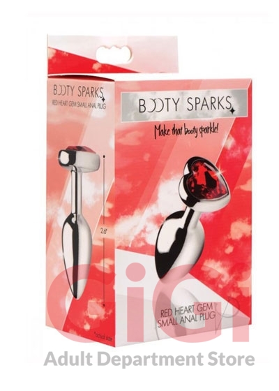 Spark your desire for decadent anal play with this beautiful Booty Sparks plug! Featuring a smooth metal finish in lightweight aluminum, it features a sweet heart shaped gem in a deep crimson red. The slim shaft will keep it from slipping out of place even during vigorous play. You will want to show off your new sparkling booty as you bend over and tease your lover. The nickel free aluminum alloy is nicely weighted and temperature sensitive for the perfect amount of sensation. When play is over, the non-porous material will clean easily without harboring any harmful bacteria. Make that booty sparkle!