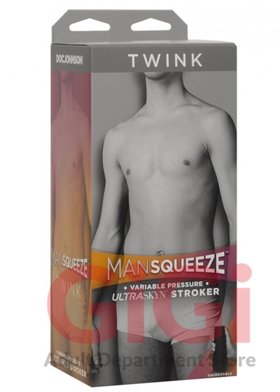Get your man. Doc Johnson’s Main Squeeze line of hard case masturbators now offers Man Squeeze, a collection created especially for men who love men. Crafted with a suction-adjusting end cap and squeezable grip that lets you vary the tightness of each stroke, Twink is a pert, playful style with a rounded ass shape and soft, pliable opening in lifelike ULTRASKYN™. Just like its Main Squeeze™ counterparts, this stroker is crafted with a unique internal texture to make you feel like you took home the cutest Twink at the club. The double-cap hardshell design doubles as a discreet travel and storage case, keeping your Man Squeeze fresh and ready for whenever the mood strikes.