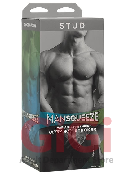 Get your man. Doc Johnson’s Main Squeeze line of hard case masturbators now offers Man Squeeze, a collection created especially for men who love men. Crafted with a suction-adjusting end cap and squeezable grip that lets you vary the tightness of each stroke, Stud features a lifelike ass opening that looks feels just like the real thing. Just like its Main Squeeze™ counterparts, Stud is crafted with a unique internal texture that feels like thrusting into the well-muscled hunk of your dreams. The double-cap hardshell design doubles as a discreet travel and storage case, keeping your Man Squeeze fresh and ready for whenever the mood strikes.