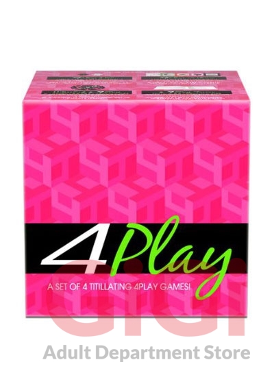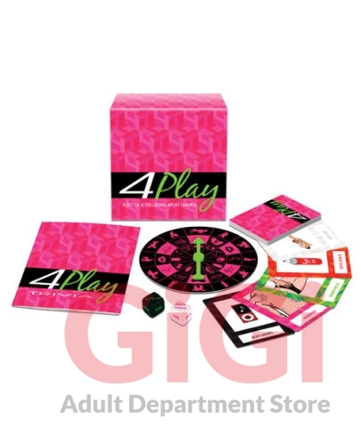 A set of 4 titillating games! Each game incorporates sexual things to do with your lover. Play trivia, roll the dice, use the cards, or flick the Wheel of 4Play to heat things up for a hot night! Includes: 1 sex spinner, 2 foreplay dice, 1 action top, 20 sex cards.