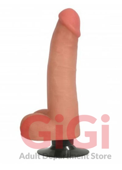 Big and beautiful with a subtle curve, this vibrating dildo aims to please! Realistically crafted out of phthalate-and-latex free enhanced PVC, from the lifelike cock head to the smooth, perfect balls. The strong suction cup base sticks to any flat, hard surface for hands-free penetration. Twist the dial at the base to control the vibration speed, enjoying a buzzing booty massage! Made in the USA out of quality materials, for a durable and easy to maintain toy that will last and last.