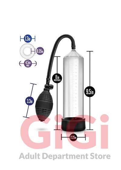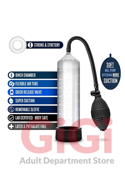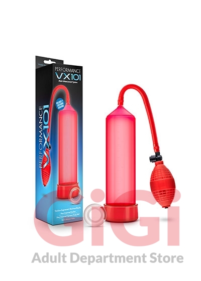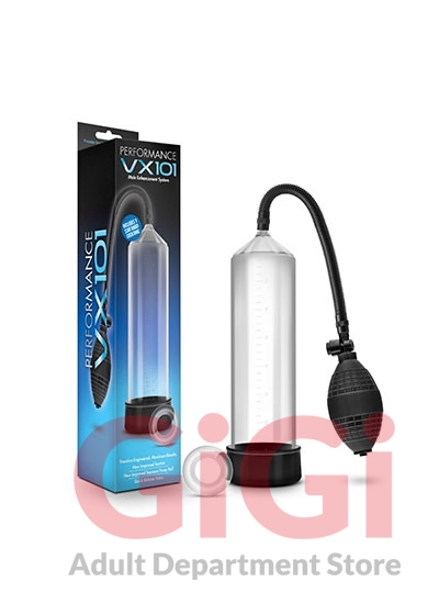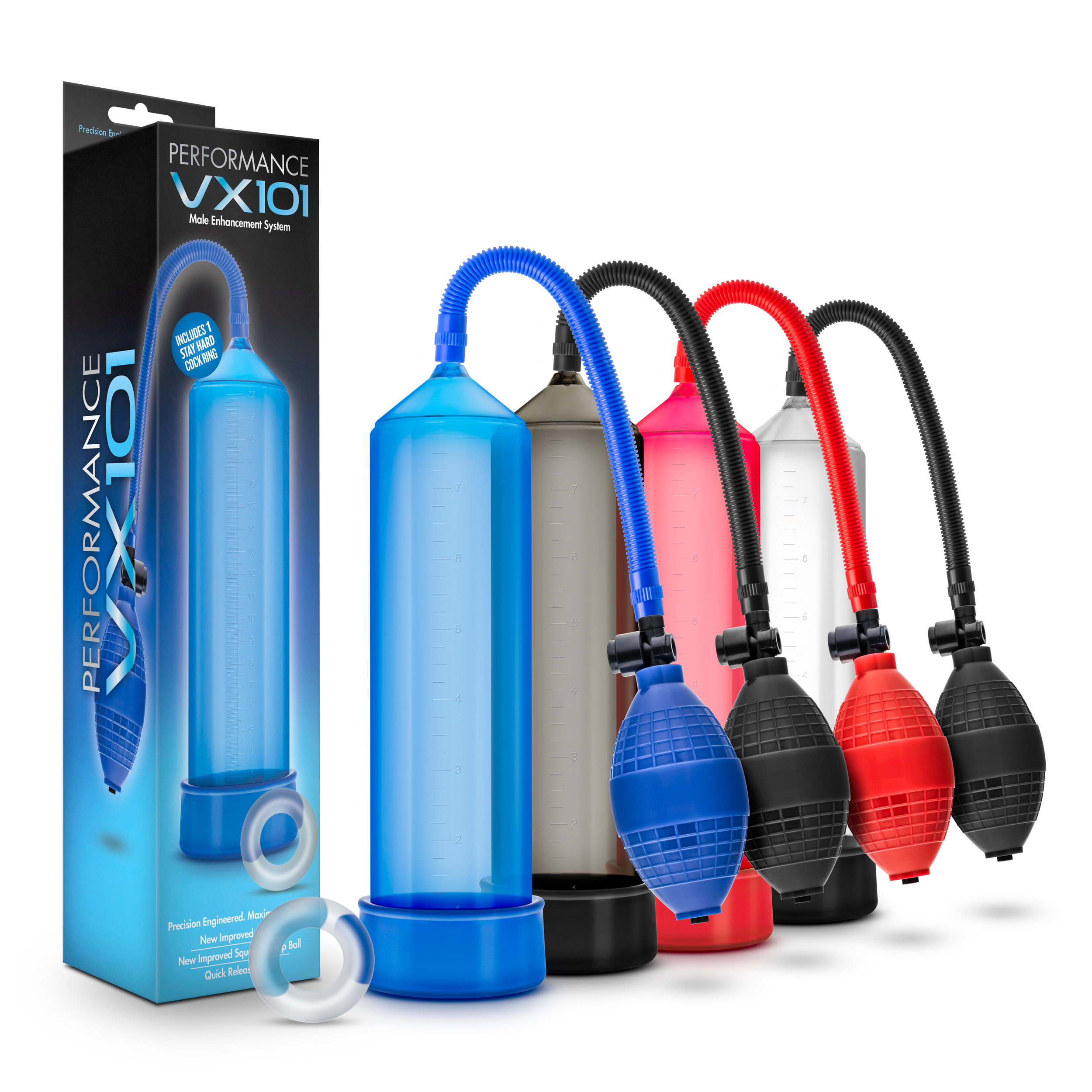 The Performance VX101 Pump is a beginner's pump made better. Featuring a medical grade ball pump, an easy release connector, and a quick release valve, this pump is designed to guarantee your safety. It includes a soft, non-porous PVC cylinder seal for a comfortable feel and increased suction. The cylinder is made from impact-resistant plastics and is sized to fit most., this Performance Pump is easy to clean. It also comes with a Stay Hard Cock Ring to enhance your playtime!