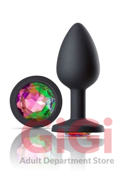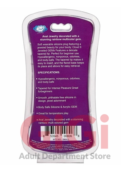 Anal Jewelry decorated with a stunning rainbow multicolor gem. Silver chromed wearable silicone plug featuring a jeweled beauty for your booty. Cloud 9 Jeweled GEMs Features a delicate tapered tip. Perfect for beginner use. Hypoallergenic, nonporous, odorless, and body-safe. The tapered tip makes it easy to insert, and the flared base keeps its place and allows for easy retrieval. The sparkling jewel makes playtime fun. This Cloud 9 Jeweled Anal Plug is excellent for temperature play when you prepare it in hot or cold water. This Cloud 9 GEM anal plug is both visually stunning and ideal for stimulating anal play. Compatible with water based lubricants. Clean with mild soap and warm water after use. Easy to clean (top rack dishwasher safe)