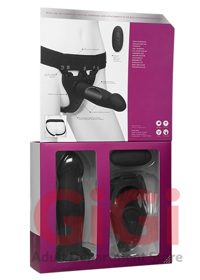 BE anything you want to be. The Body Extensions Hollow Strap-On System by Doc Johnson® is a unisex collection of harnesses and hollow silicone attachments designed to stimulate the body and allow penetration play regardless of the type or function of the wearer’s anatomy. This high-quality 2-piece set includes an adjustable elastic and silicone harness with a built-in 10-function vibrator and one premium silicone attachment crafted to maximize the sexual pleasure and empowerment of every user. Controlled via wireless remote or surface buttons, Body Extensions vibrating harnesses are fully rechargeable with the included USB cable. Each product in the Body Extensions collection includes detailed instructions for care and usage.