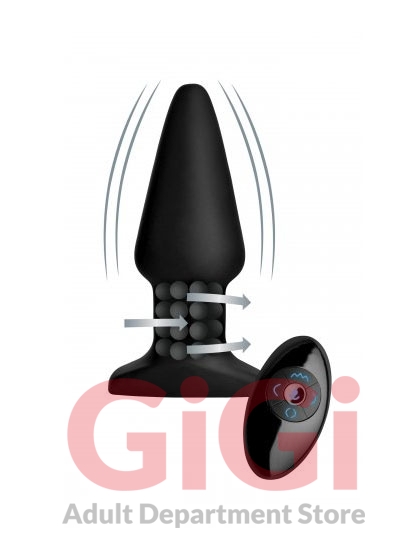 This high-tech tool has a tapered tip so that it can slide in comfortably and deliver the ultimate anal pleasure! Better than your average butt plug, this revolutionary sex toy will actually massage the opening to your hole with rotating beads along its stem, providing a sensation similar to a rim job! Play with 3 speeds and 2 functions of swirling satisfaction around your sphincter. You will also be treated to 3 speeds and 5 patterns of vibration as the plug thrums inside you. An optional remote control can make playing on your own easier, but it can also provide wireless fun with a partner. Light up buttons on the remote and the plug make them easy to see in the dark. Made of premium silicone, this exciting tool is non-porous, phthalate-free, and waterproof for a body-safe experience and thorough sanitization with soap and water. A storage case is included.