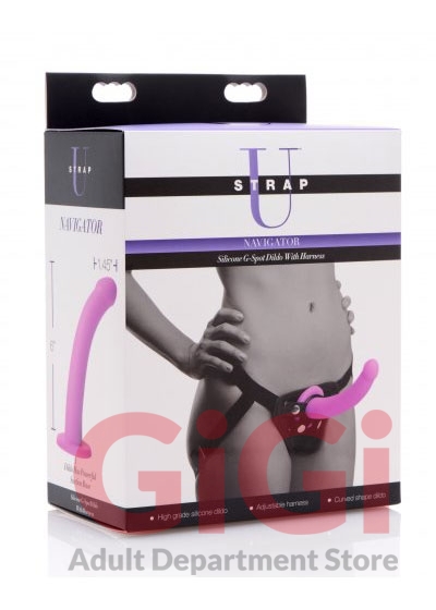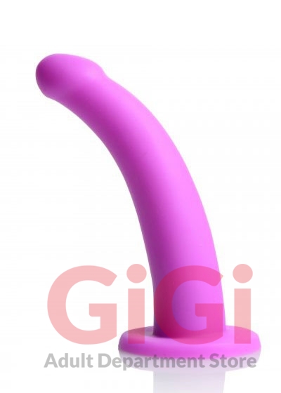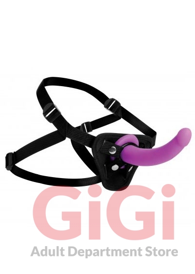 Perfect for pegging or vaginal sex, this strap-on set has everything you need for a comfortable and passionate penetration! Equipped with a sexy, adjustable harness and a silky, non-threatening dildo, you and your partner will be able to delve into new pleasure territory. The harness accommodates many sizes, wrapping seductively around the butt and thighs. A small pocket sits within the inner panel for adding a vibrating bullet if you choose. The dildo is curved for prostate or G-spot stimulation, with a tapered shaft that gradually increases in diameter. This, coupled with the smooth material, will allow for an easy insertion at your own pace. The dong can also be used on its own, with a suction cup base that is perfect for mounting to hard surfaces. Made of silicone, it is non-porous and phthalate-free. Sterilize with mild soap and warm water, but do not use with silicone lubricants.