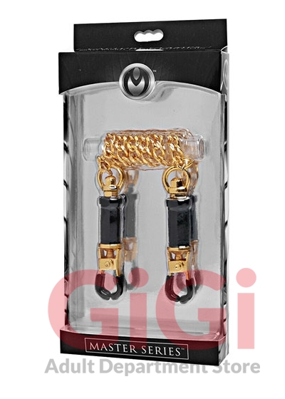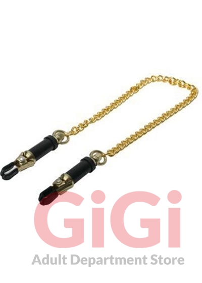 These Deluxe Adjustable Nipple Clamps are a must own for any nipple play enthusiast. These clamps are almost entirely made from solid brass. The tips of these clamps are rubber coated for extra comfort. These clamps are highly adjustable and you can be very stringent with the amount of pain you apply o your partner or sub. These clamps are connected by a 12-inch gold plated chain.