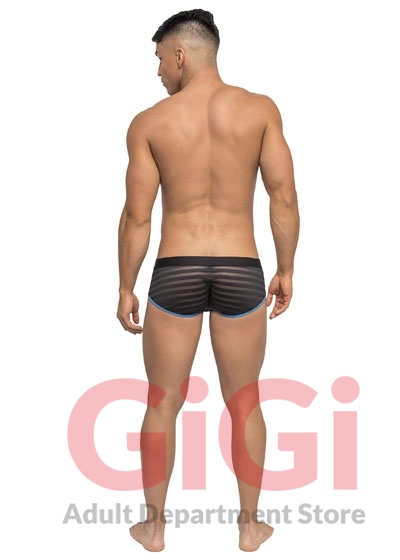 Black nylon spandex clip mini shorts.
