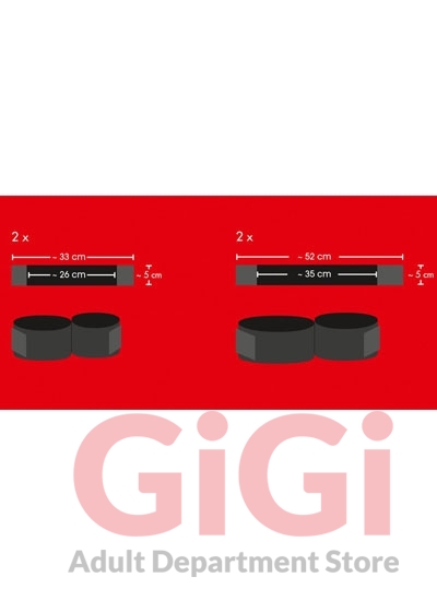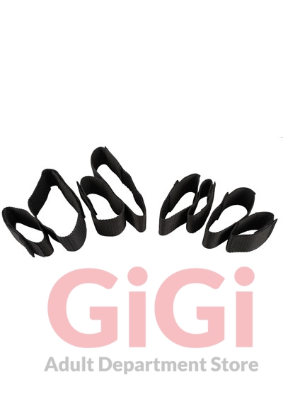 A 4-piece bondage set for hot erotic games. The package contains 2 restraints for the elbows & knees and 2 restraints for the wrists & ankles. The restraints have no padding and are made out of sturdy belt material. The convenient hook & loop fasteners make the restraints fit perfectly and allow for various bondage positions. Always a perfect fit.