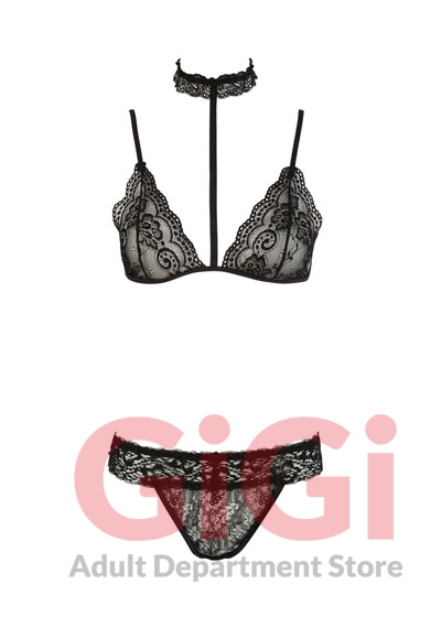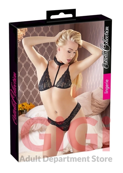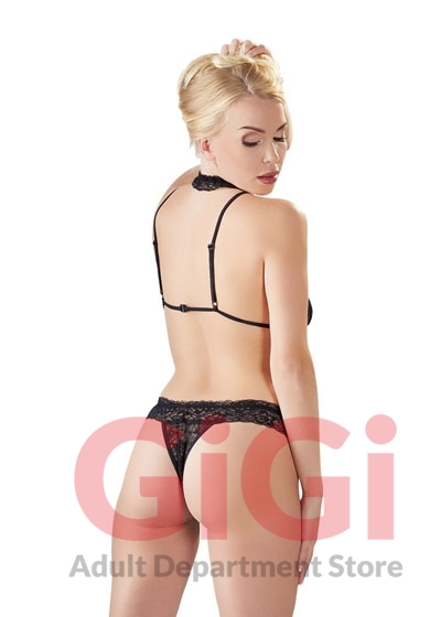 collar. Includes a thong with a wide waistband. Both pieces are made out