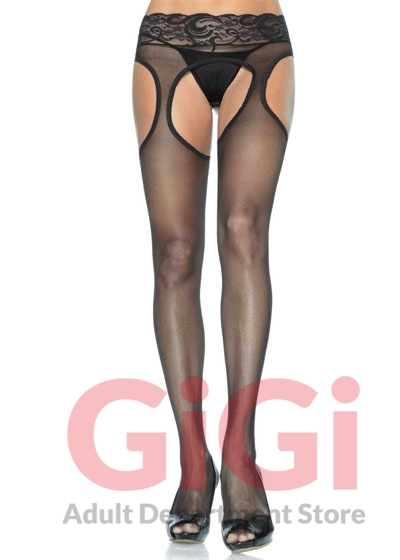 Sheer Garter Pantyhose One Size Black