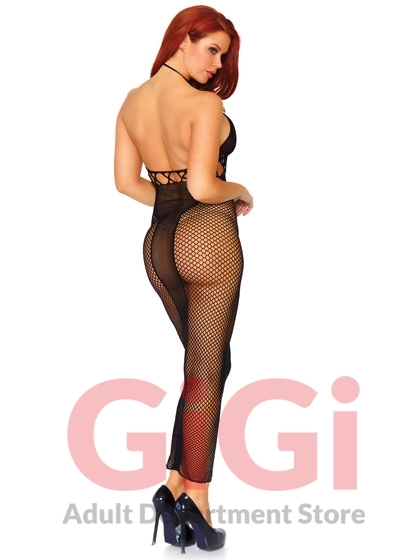 Halter Duel Net Backless Dress With Cut Out Detail One Size Black
