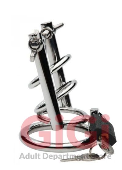 Delve into a world of pleasure and pain with this extreme cbt chastity cage that will take you to the limits of what you can endure. The two slim, smooth arms are designed to be inserted deep into the urethra, as you lock the ring around the base of the cock and balls. With every twist of the wing nut, the arms spread further and further apart, stretching the urethral opening wide open and leaving you gaping. Sized to be used even if you are flaccid, the three shaft rings will keep your cock steady as you are forcibly dilated. For safety, the urethral spreading arms are able to be closed by the wearer. Measurements: base ring: 1. 95 inches in diameter; shaft rings: 1. 25 inches in diameter; urethral spreaders: 0. 11 inches in diameter each, 1 inch insertable, opens up to 0. 9 inches wide; device measures 3. 75 inches in total length. Disclaimer: these products as with all products on this site are supplied as is. No warranty is given either implied or expressed. Products are intended as novelty only, and no representation is made or implied as to their suitability or safety for any particular use. Purchasers use the products entirely at their own risk. The manufacturer or re-seller is not liable for any direct, indirect, incidental or consequential damage or loss howsoever arising caused by use or misuse of the products. This includes, but is not limited to, damage to the products and personal injury or damages due to use or misuse.