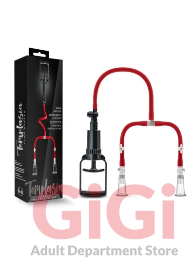 The Temptasia Advanced Nipple Enhancement Kit is an exciting way to expand your erotic play. Tease and arouse as you use this easy squeeze ball pump to stimulate and enlarge your nipples. The crystal-clear acrylic cylinders allow for easy viewing, making this system great either for solo play or with a partner. The acrylic cylinders of the Advanced Nipple Enhancement Kit are mid-sized, for those with larger nipples or anyone with previous pumping experience. With non-porous silicone tubing and acrylic cylinders, this system is body safe and easy to keep clean.