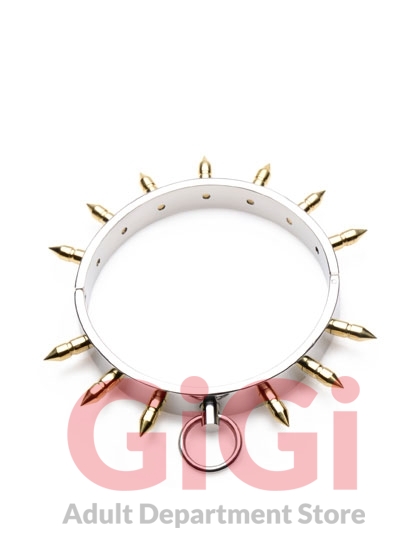 Do you have a sexy brat that needs to be trained? Turn them into a good slave by asserting your ownership with a heavy-duty locking collar. This beautiful bondage accessory is made of stainless steel and adorned with 13 spikes. An o-ring allows you to attach other bdsm accessories, such as a leash or nipple clamps. Whether you are playing in the privacy of your home or wearing this work of art out and about, the locking clasp ensures that your plaything will wear a symbol of their servitude until you release them with your key.