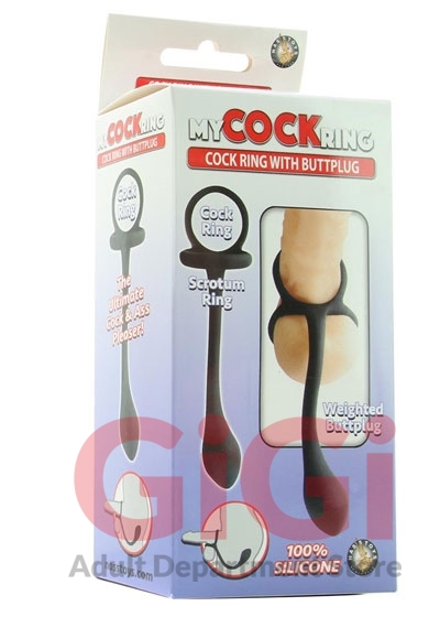 Holding tight around base and balls thanks to two super-smooth rings, My Cock Ring with Butt Plug offers tons of erection strength, stamina and support plus a deviously deep, sleekly tapered silicone plug to boot - or butt.