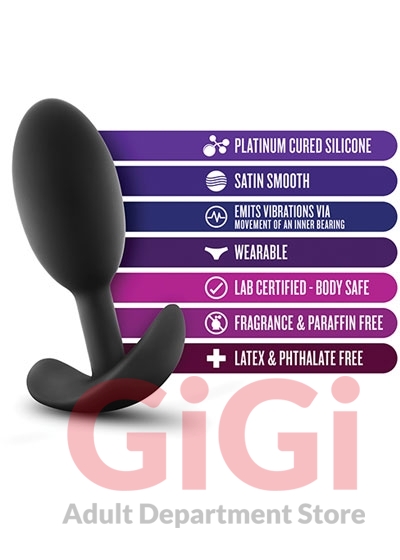 Made of satin smooth silicone, the Luxe Wearable Vibra Slim Plug is body safe, hypoallergenic, fragrance-free, and easy to clean.