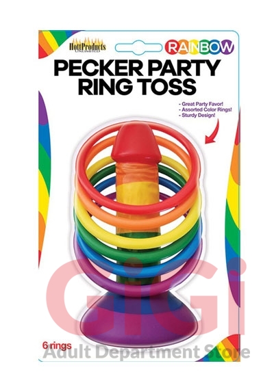 Liven up any party with the Rainbow Pecker Party Ring Toss game! Just place on to any flat surface, stand back and toss the colored rings to see who can get the most rings on this cute little erect pecker! Play for Drinks/Striptease/Dares or whatever wild adventures your mind can conjure up! Rainbow Pecker Party Ring Toss will surely bring any drab party to life in short order!