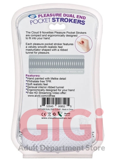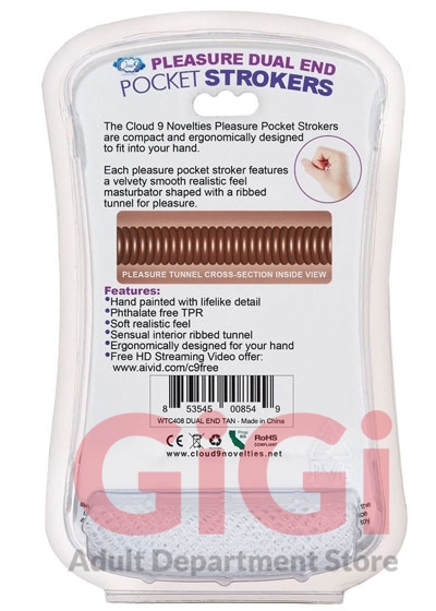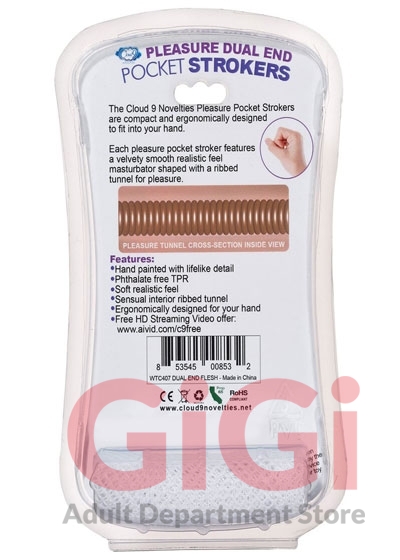 Each Cloud 9 Novelties Pocket Stroker features a velvety smooth realistic feel masturbator shaped with ribbed tunnel for pleasure. The Cloud 9 Novelty strokers are all compact and ergonomically shaped to fit into the palm of your hand. Simply flip the stroker over from end to end to experience a tight pussy or anal experience.