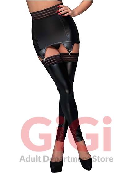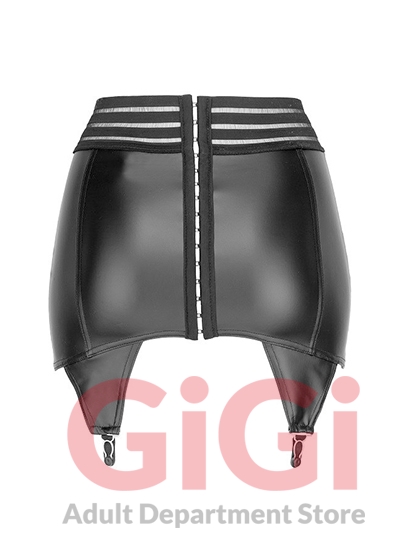 Extra wide suspender belt made out of extremely stretchy (power) wetlook in a shiny matte black colour. With an elastic waistband and a full-length hook-fastener at the back. With stretchy and partially transparent material around the top. Tight-fitting. 80% polyamide, 20% elastane.