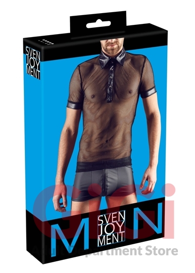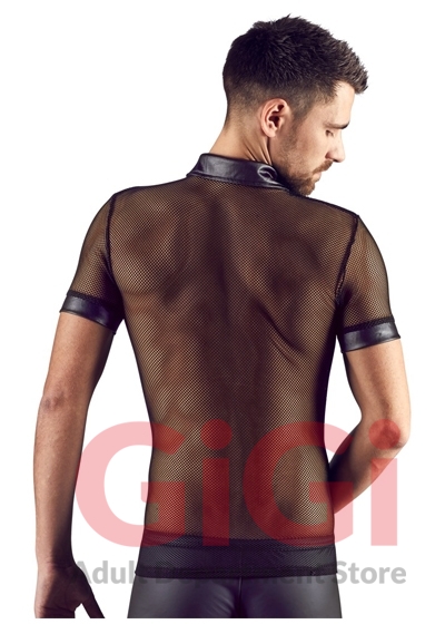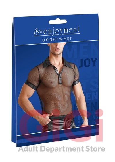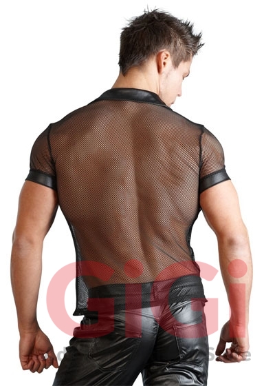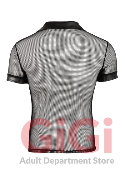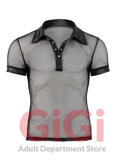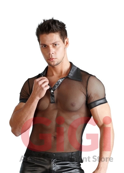 Show off in this masculine polo shirt with press studs that stop at the chest and women will be throwing themselves at your feet. The shirt is also made out of a seductive mixture of net and wetlook.
