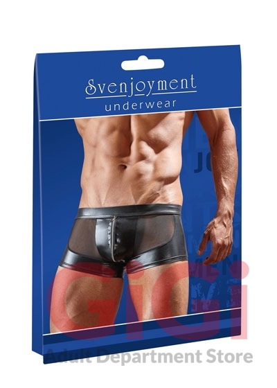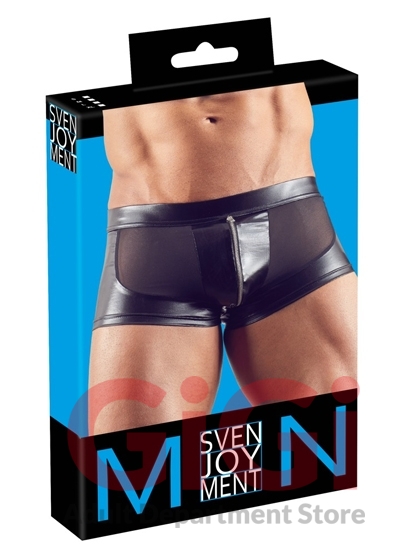 The black pants combine shiny wetlook with transparent powernet inserts, which will make you partner want to have cheeky glimpses! With a fabric-covered waistband. The sexy pants with a padded zip promise to be comfortable to wear and are not only for the viewing pleasure!