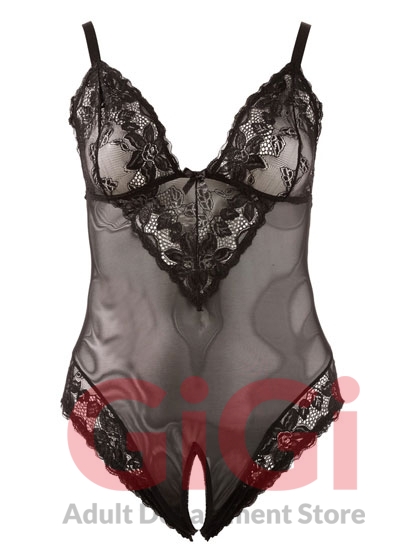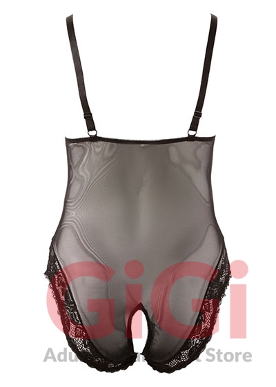 This beautiful body made of black powernet creates an amazing figure. The cups and material around the legs are decorated with lace. The crotch is open for… Adjustable straps. 90% polyamide, 10% spandex.
