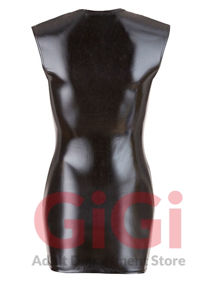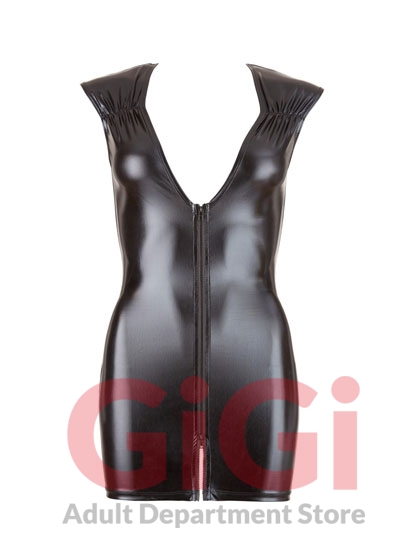 You can emphasise your beautiful feminine curves in this black dress that is made out of shiny wet look material! This tight-fitting dress is extremely hot because it has a low-cut neckline and a 2-way zip at the front. Your partner will be more than happy to help you out of this little black dress…