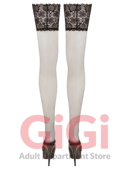 Hold-up stockings with a delicate, 15 cm wide top part made out of floral lace. With a silicone lining for a non-slip fit! 20 denier. Oeko-Tex certified.