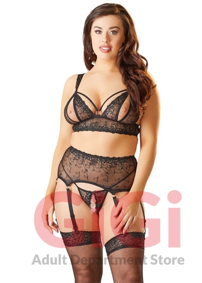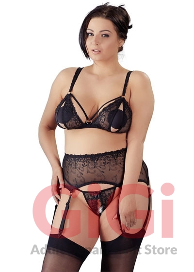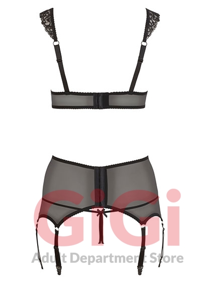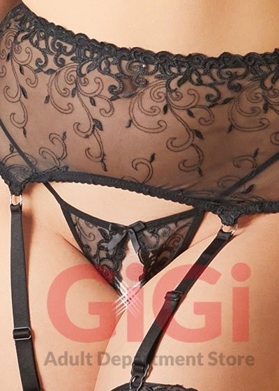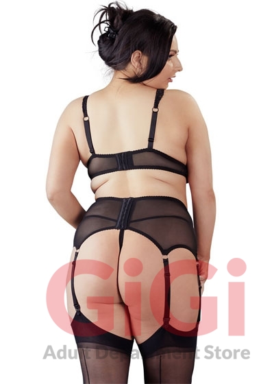 The wide suspender belt decorates your waist and has 3 suspender straps per side and a hook-fastener at the back. Furthermore, the wide, adjustable bra and suspender straps mean that the set feels extremely comfortable when worn!