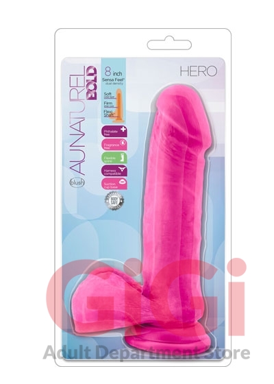 Au Natural Bold Hero 8 Inch Dildo Pink