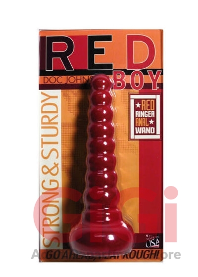 Red Boy Toys by Doc Johnson are always up for lots of rough and ready anal adventures, and since they're incredibly well made and sturdy, so you don't have to play nice. The Red Ringer Anal Wand is a long anal tool with 9 graduated, rounded ribs down the shaft that provide an amazing sensation similar to anal beads. The flexible silAgel PVC core is antibacterial, non toxic, latex /cadmium free; it's also coated with smooth, slick plastic for easy cleaning, and to add some firmness and precision. It's a fairly large toy, probably not suited to anal beginners, if you are just starting out, have a look at our other butt toys for something similar in a more manageable size. Enjoy.