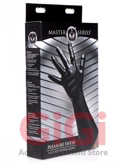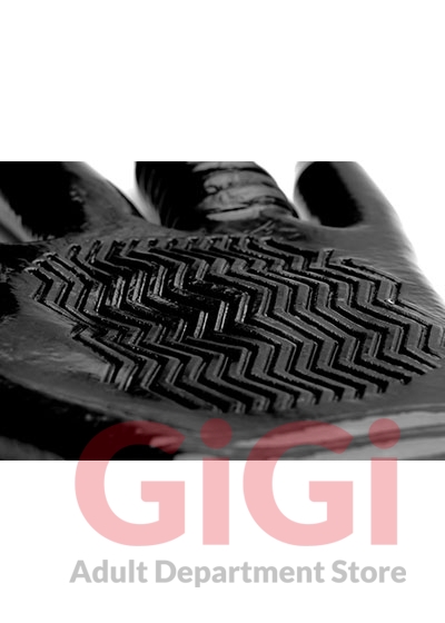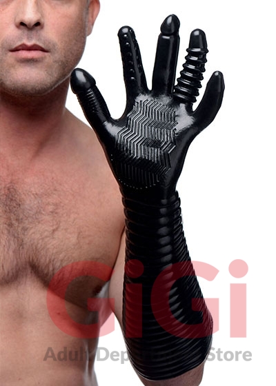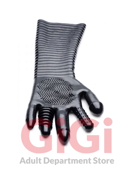 Give your hand some texture during fisting play! This long glove is so versatile that it may become a staple in all of your sexual experiences! So many ways to use aside from full-fist penetration... finger, stroke, massage, or spank. Whether you are male or female, playing solo or with a partner, this glove will show you love! Each of the five fingers is uniquely shaped for a range of sensations during anal or vaginal insertion: smooth and tapered, bold ridges, penis-shaped, raised nubs, or bulbed with subtle ribbing. The palm has a zig-zag tread that brings extra excitement to a handjob or masturbation, and the entire forearm is smoothly ribbed for additional stimulation as you push deeper inside! This double-sided glove works on both hands and is compatible with silicone and water-based lubricants. Clean with mild soap and water.
