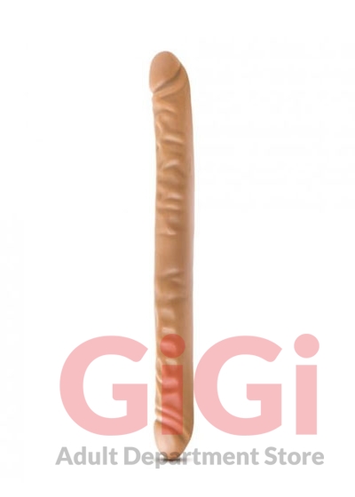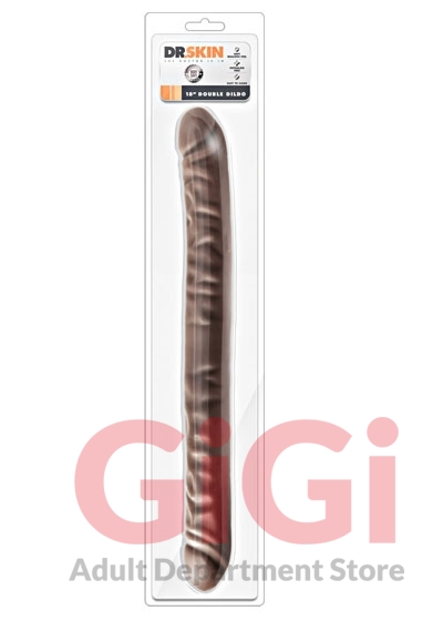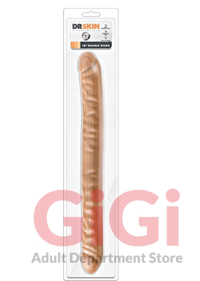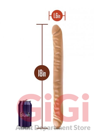 Twin tip massive dildo from Dr Skin series by Blush Novelties measures substantially 18" (45 cm) long and has a thick and fulfilling 5" girth (1.6" diameter) delivering fast and deep satisfaction.