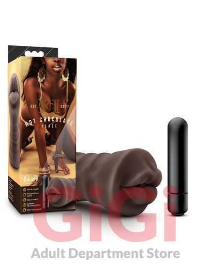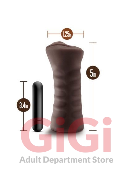 Hot Chocolate Brianna Brown Vibrating Vagina Stroker from Blush Novelties. Hot Chocolate Brianna feels real. Soft, ribbed canal for the most life like experience. Bullet vibrating. One speed bullet vibe to enhance sensation as you stroke. Accommodating. Open ended sleeve will take any size. Easy to clean. Peace of mind. Made from Thermoplastic Elastomers TPE. Contains no fragrances, phthalates or latex. Size 5 inches length by 1.25 inches width. The Hot Chocolate Brianna delivers a soft and supple vagina that is open wide for you. This realistic stroker is yielding, flexible, and filled with sensational textures. It comes with a single speed vibrating bullet, to enhance sensation as you stroke. Open ended and easy to clean, Brianna will accommodate any size penis. Made of premium Thermoplastic Elastomers TPE. It is high quality and body safe. Bullet vibrator requires 1 AAA battery, not included.