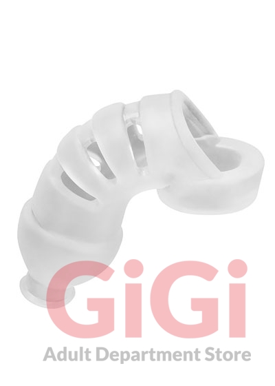 More "head” room drives guys in chastity nuts--they get more sensation, more friction-frustration, but can’t do anything about it. The curve in the shaft makes erections less comfortable, but keeps chastity possible under clothing, 24/7, with more bulge but still discrete. LOCKDOWN does give a meaty bulge even if it locks down your cravings and locks out your ability to JO…one of the few toys hünkyjunk designed to deny your pleasure.
