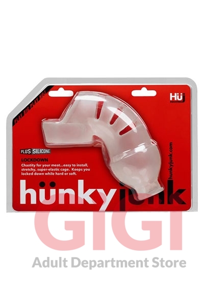 Chastity is Hüj! Self-imposed or a part of couple’s play, LOCKDOWN is hünkyjunk’s meaty-thick and weighty chastity toy. We made this one thicker--the rubbery-soft silicone blend is stretchy but restrictive…a erection is difficult in LOCKDOWN. There’s more room inside: LOCKDOWN stretches to fit any size guy, even the Hüj ones and the sling style base keeps it on--the ball-ring is more substantial so it stays in place.