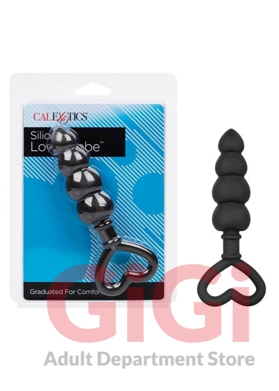 Get down with the Silicone Love Probe, a graduated pliable plug with a heart shaped finger loop crafted with love for intense backdoor stimulation. The silicone anal probe delivers thrilling anal pleasure from the tapered top down the flexible, tiered shaft. Use the heart shaped retrieval ring for total control over stimulation. Perfect for beginners and erotic experts alike, the tapered shaft increases in girth for intensifying pleasure. The flexible probes are made from a smooth, seamless silicone. This body safe material is unscented and phthalate free to keep your most sensitive spots happy and healthy.