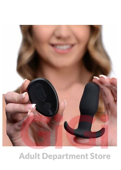 Perfectly sized for beginners, this small anal plug packs 9 modes of powerful vibration with the push of a button up to 25 feet away! Whether you appreciate the convenience during solo play, or the power during couples play, the wireless remote is an exciting feature for use at home or out on the town! Simple buttons allow you to play with 3 speeds and 6 patterns of thrumming thrills. A tapered ergonomic base allows it to sit comfortably between your cheeks for long periods of time. Let the pleasure take control with this easy-to-use, remote-controlled male pleasure tool. Made of premium silicone, it is phthalate-free for body safety, and non-porous for thorough sanitization. Clean this waterproof device after use with warm water and mild soap or toy cleaner.
