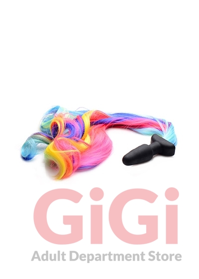 Enjoy hot equine action in a fun, flirty color with this smooth, full pony tail! Braid it, brush it, swish it, show it off! The tail is a full 20 inches of synthetic fiber, topped with a phthalate-free and silky smooth silicone plug. The classic spade shape inserts easily, with a flared base to keep it firmly in place.
