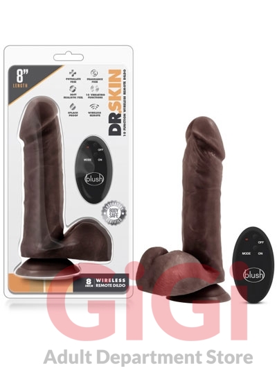 Dr. Skin - 9 Inch 10 Function Wireless Remote Dildo - Chocolate