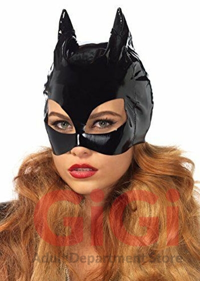 Vinyl Cat Mask. Slip on. One size. 70% Polyurethane and 30% polyester. Display bag packaging.