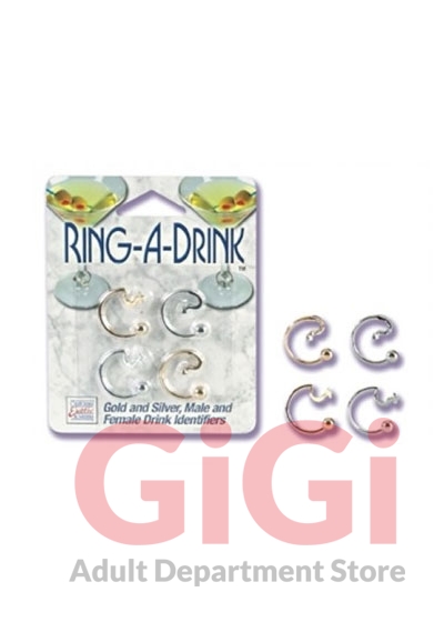 Ring a Drink Gold and Silver Male and Female Drink Identifiers 4pk