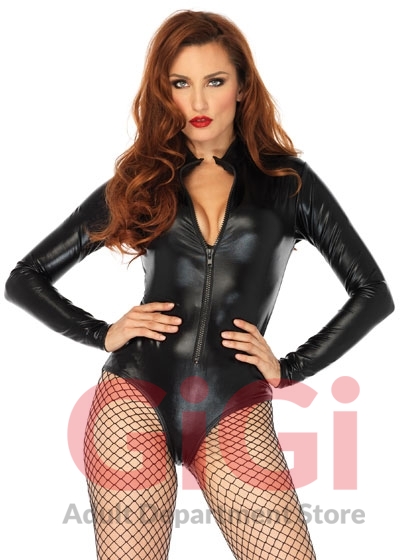 The DIY costume possibilities are endless in the Wet Look Zipper Front Bodysuit by Leg Avenue. The perfect costume basic, this long sleeved bodysuit is made of stretchy wet look fabric and features an industrial zipper that zips all the way up to the high neck. Perfect for DIY Lara Croft costumes, sexy villains, or sultry superheroes. Add Leg Avenue hosiery to complete your look!