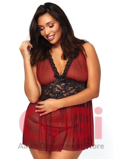 2 Piece sheer halter babydoll with floral lace empire waist and matching g-string.