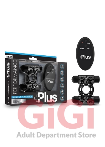 Discover intense pleasure during lovemaking with the remote-control Performance Plus Double Thunder Cock Ring. Powered by the market’s most powerful vibrator of this size. Double Thunder feauters 2 bullets that emit deep thumping vibrations that will send your lover into orgasmic ecstasy. control. The Performance Plus Double Thunder Cock Ring is limited only by your imagination. The rechargeable bullets charge via a magnetic charging port with a waterproof rating of IPX7. Use the ring and bullets together, use just the bullets and remote control, or use just the ring. The perfect couple’s toy. The perfect solo toy as well.